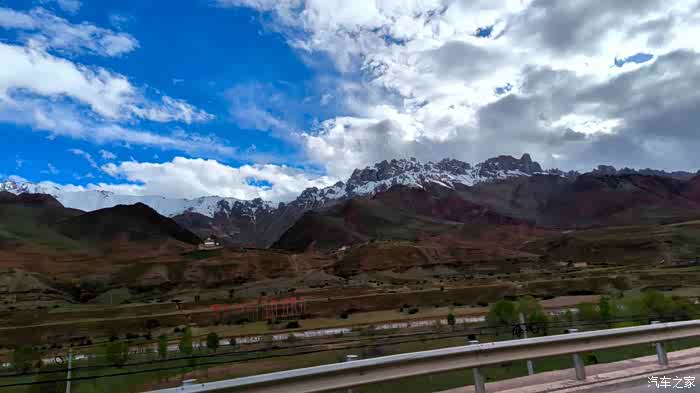 路上初见雪山,很兴奋。