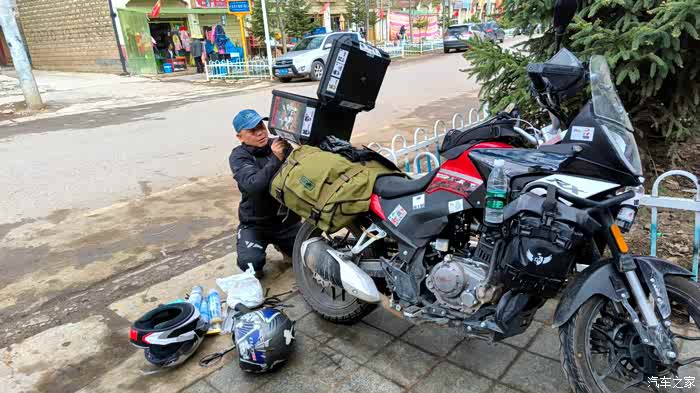 哦哦,介绍一下此行的工具:赛科龙RX250。踏上317的时候刚过了800公里,最初是想选择NX400的,但是呢,团长对3万块的预算不满意,为了敦促她尽快同意买车拨款,我又带她看了这个RX250,它们之间没有共同点,合资--国产;双缸--单缸;400---250。要说共同点就是外观在团长她看来都差不多。但是价格差了整整一半,这是打动我家团长的最大优势。我当然愿意选择400,但有两个方面让我犯嘀咕,1是车辆的保险杠,货架这些还得花钱,且不便宜,购置税及后续的保险费确实也要高出一截来。2是前减震漏油和曲轴油封漏油,据说概率很大,且处理方式也不厚道,就是换,人工费还得给,我怕到时遇到这个问题被团长埋怨。而且吧,从来没用中排车,自己肯定要当个宝,这宝要是出了问题,自己心里也过不了关。但是如果选了国产车,万把块,真要这漏那漏,我修起来也没心里负担,毕竟维修成本也不贵,说白了哪怕用菜油当机油灌进去使唤,当个工具车也不心疼,归根结底还是穷人见不得宝,只适合用工具车。我对国产车并没有特别不信任,毕竟因为穷,几十年玩下来用车都是国产,也没丢我在半路过,宗申感觉也是多年老牌子。一说这车可以买,团长付钱老爽快了。。。得,就它吧,250功率也够用了,我也不飙车。实际使用下来,这车功率20个千瓦,还是没虚标,4000多海拔的高原平路载人可以上GPS时速110.。爬坡3档基本全覆盖。回头弯用2档。就是低扭不咋滴。转速掉下来想提速,必须降档,甚至降一个档还不行,得降2档。车子操控轻快,震动控制得尤其不错,我认为就单缸来说甚至可以说是优秀。坐高适合我这个166的矬子,单人半脚掌,带人加行李基本可以全脚掌。