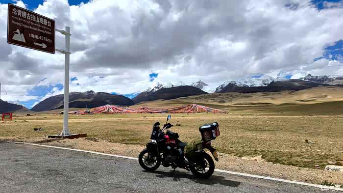 岗拉山口,海拔4824.这里遇到个 云南 老哥,慢悠悠的往 拉萨 去。交流了下,他计划今天到 那曲 ,听说我们要去 当雄 ,说还远还远,他是跑不到的。我明白空冷150在这海拔翻山的痛苦。最高速40公里/小时。。。确实跑400公里那是折磨。于是互道平安,我们先去 那曲 打个尖。