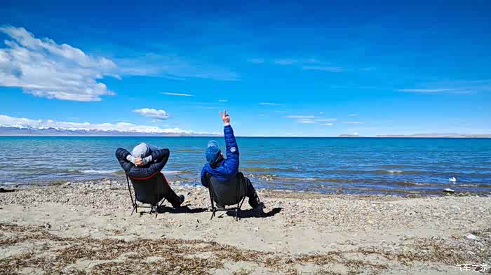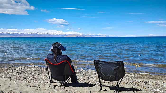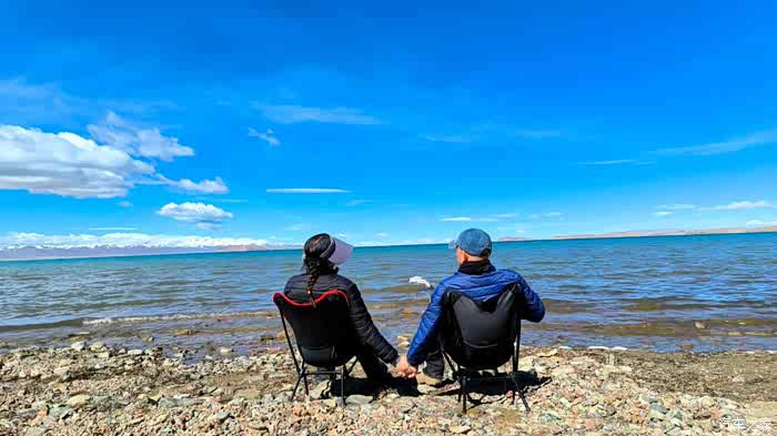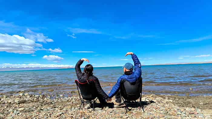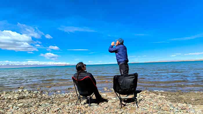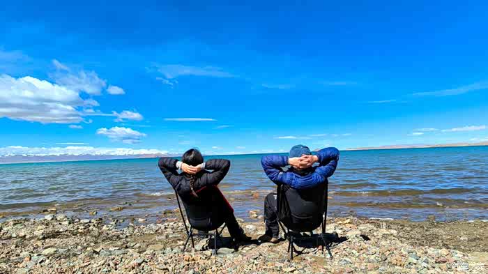 站着欣赏累了,把椅子架起来。这两把椅子带了2000公里来,今天派上大用场了。我俩坐下,开始放空,就看着天,看着水,看着山。。。。
