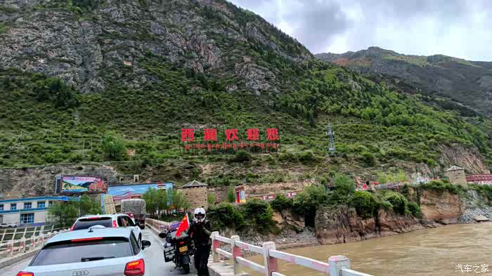 桥上遇到 重庆 老哥,独行一人求帮忙拍照。虽然堵住桥上这行为不大好,估计也是初次进藏,心情激动吧,我家团长正好在后座方便,帮他留影好啦。我们呢,怎么说也不是第一次进藏啦,嘿嘿,虽然心情也激动,但是还压得住,压得住。