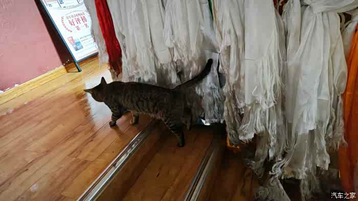 有个咖啡店在楼上,我们去看看,一只狸花护送我们上楼。