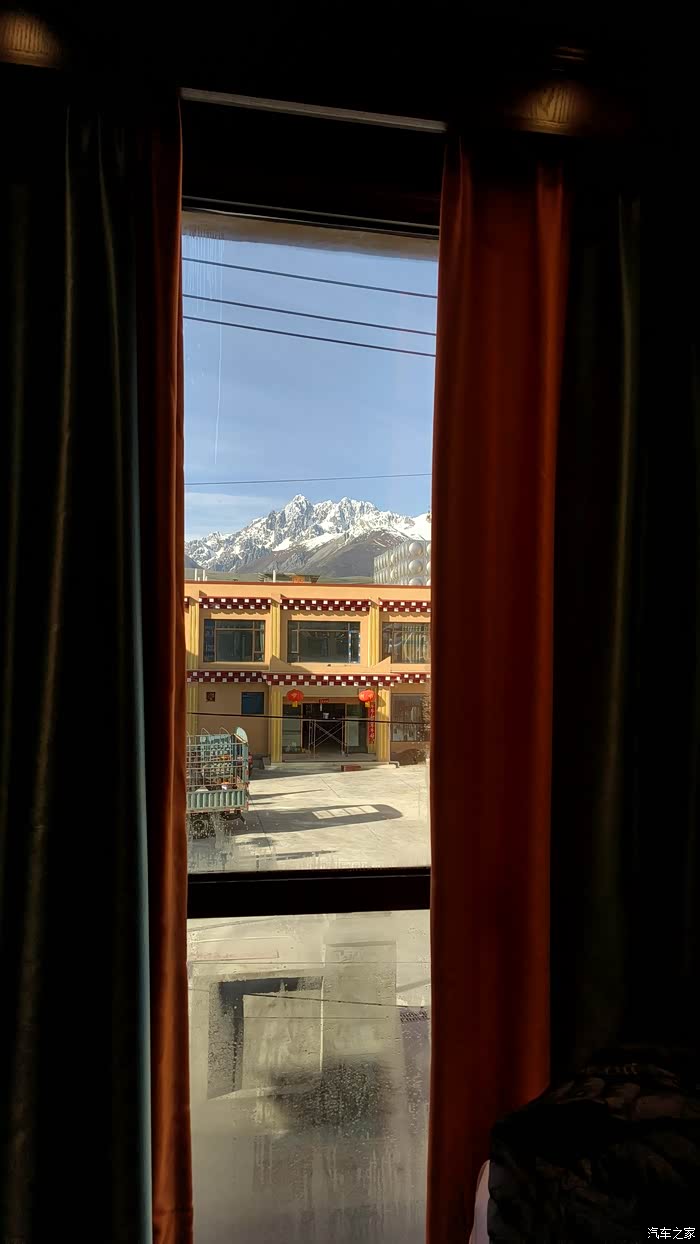 早上拉开酒店的窗帘,就是雪山。我们早上在酒店吃早餐,正好和当地一个中年喇嘛同桌,喇嘛很友善的劝诫我们出门看风景的同时,要注意审视自己的内心。说道,风景一看就过啦,审视自己的内心反省查看有没有嫉妒、愤恨,内心的恶念等对修身大有帮助(我猜用简略的语言是不是就是贪嗔痴呀)。我们也嗯嗯答应,此次出门我们也算是修行吧,饭后我和团长相视一笑,收拾行李准备出发。