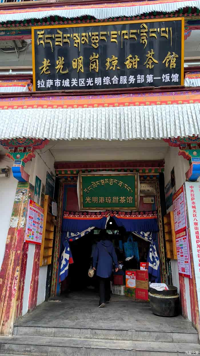八廓街外这个老光明甜茶馆,那是名声很大,我们也去喝喝茶。里面座无虚席啊,本地人居多,可以体会到原生态了。进去旋了几圈,终于找到两个位子,团长去买茶和面,我就坐下来等。
