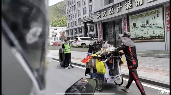 结果老板是 江油 青莲的。团长有的没的和老板聊起来。我在外面仔细看咋个把螺母重新上进去。尾箱是我自己装的,固定方式是塑料尾箱底板和钢片靠螺丝把原车的货架夹住。之前上紧了,但是塑料底板本身弹性没有钢片那么强么,经过长时间颠簸,对螺丝的压力就没开始那么大了,螺丝就松动,继而抖掉了。我慢慢下到山脚这几公里,就已经把另一边原来还有的螺母都给跑掉了。原因找到处理起来就简单了,单螺母不能拉紧了,就加双螺母防松即可。拆掉后尾箱,重新上螺母,老板贴心的给了电动工具,旁边站着没事的藏族朋友也是很热心,虽然穿螺丝他帮不上忙,但看见我们因为太阳太晒要挪车的时候,忙不迭的上来搭手。