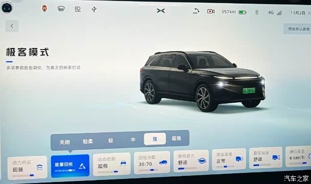 比如标准模式:兼顾续航和性能;舒适模式:乘坐舒适;运动模式:提升驾驶乐趣;弹射模式:推背感;极客模式:符合自己个性化模式。
