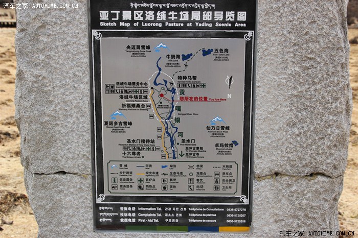 早上出门,先开车到亚丁景区的停车场,换乘大巴到景区门口,景区门口步行到景区内的电瓶车乘坐点(实际上是汽油车,外观和普通电瓶车一样。因为爬坡,电动的没力),这段路没多长,却成了后来下山之路的梦魇,稍后再说。电瓶车开半个小时候以后,到达洛绒农场服务点。然后再步行到洛绒农场。这个农场才是真正的所谓的景区