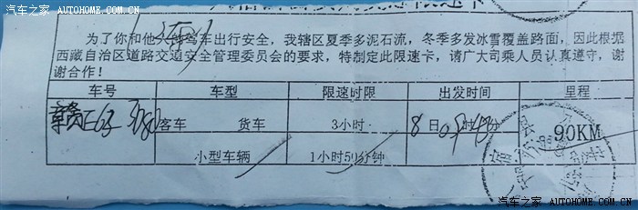此后领取第一张限速条就进入西藏界了。就路本身来说都是柏油路,除偶尔有塌方的地方,路被损坏以外。都是很好的路。但是基本上都有碎石,而且旁边有江,护栏不多,尤其和大车会车的时候,总是感觉一不小心就掉江里去的感觉。