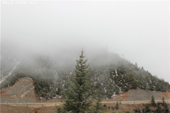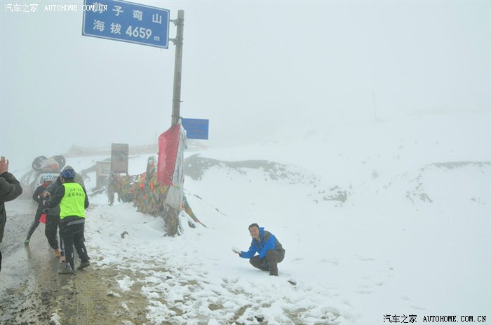 到达剪子弯山山顶前的一段路,非常差,有一段路,马六冲了三次都失败了,第四次往后倒车了很多才冲上去。一方面是有雪打滑,另外一方面可能是高原,空气稀薄,动力损失很大