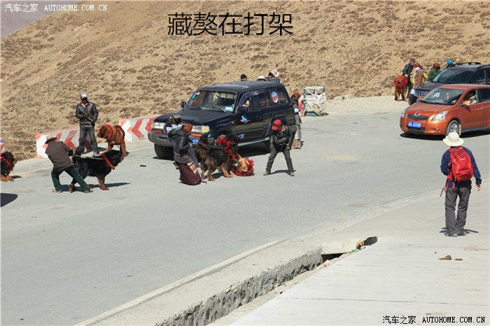 说一个小插曲,羊湖风景区的大巴附近,很多藏民带着藏獒来赚钱,游客和藏獒合影一次,收费10元。不知道为什么,钱没赚到,两只藏獒自己干起来了