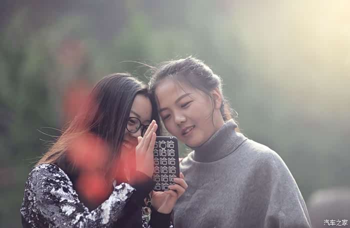 拍多了风景,喜欢蹭拍些人文,桥上一对好闺蜜,在看自己的自拍。