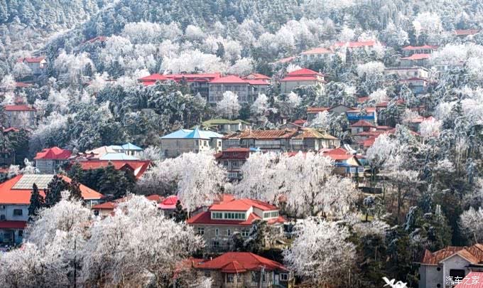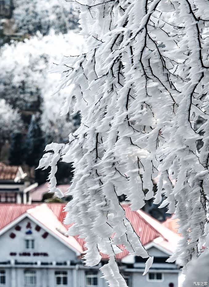 到了庐山顶,由于当天天气不佳,云雾缭绕,住了一晚上。第二天车子起了冰甲。