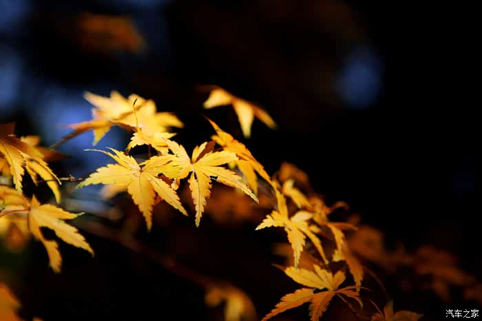 秋天的枫叶很美,秋天的银杏叶也很美。一树一金色,一树一火红。