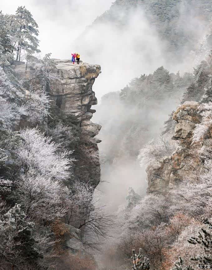 温度渐渐下降,山间出现了冰凌,雾凇景观。