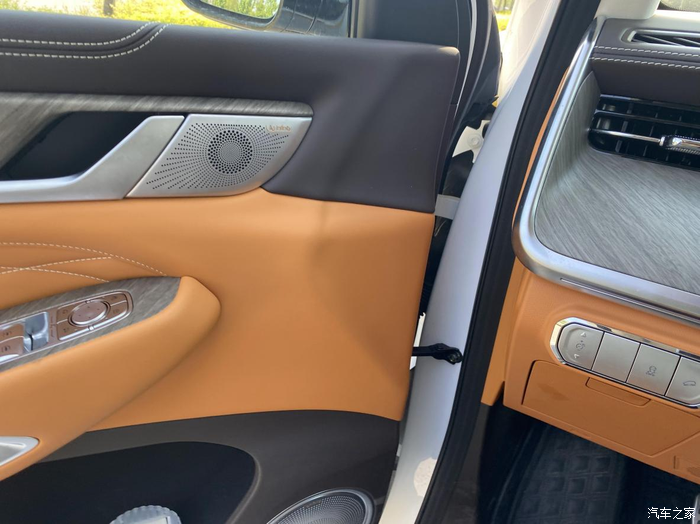 车内的细节也比较到位,门板上的软性包裹和座椅是一样的,触感柔软。内饰风格偏向于经典优雅风,再加上一大块可开启式全景天窗,车内空间感很强,坐着也舒服。