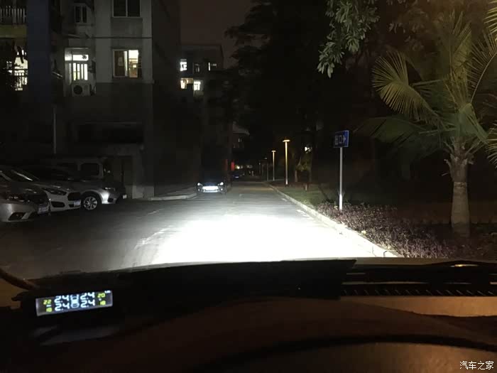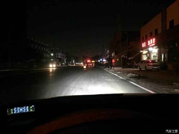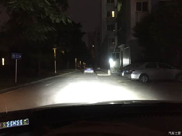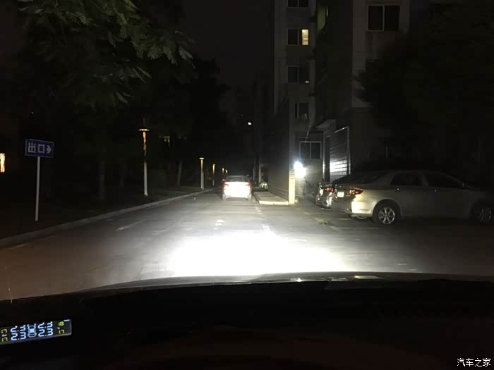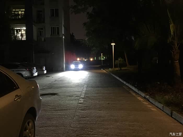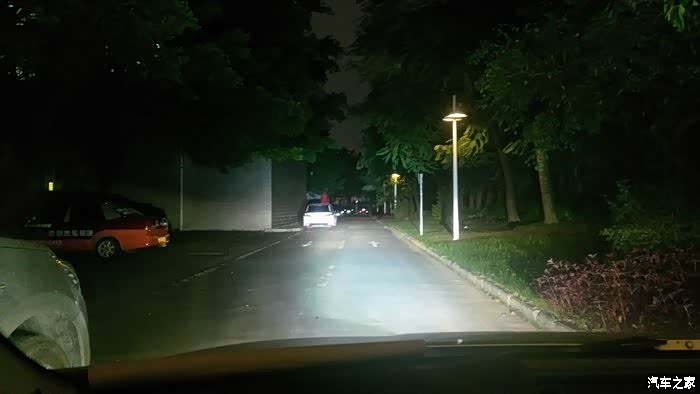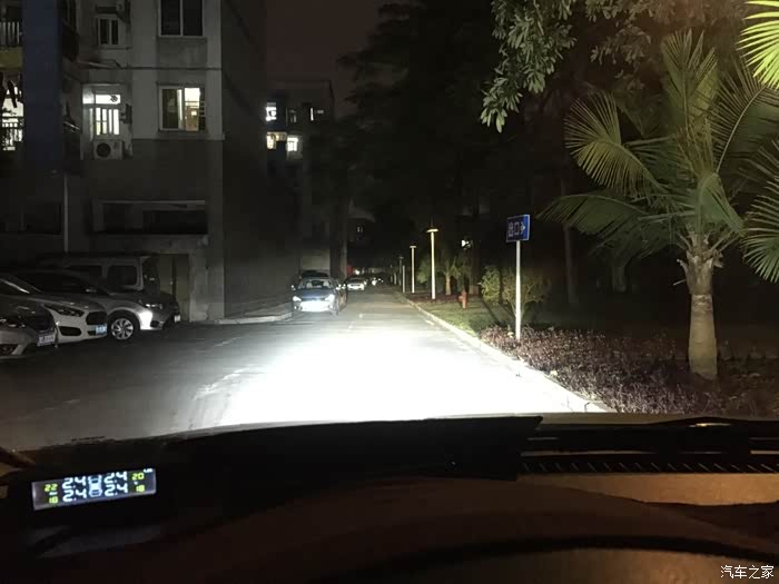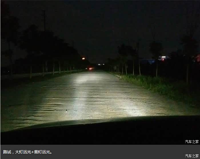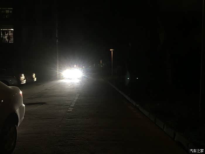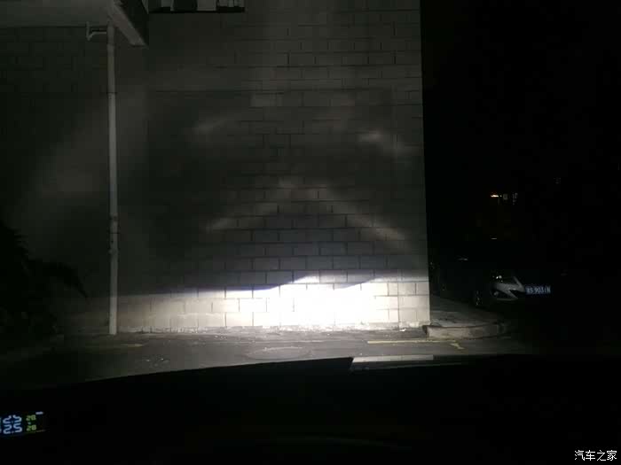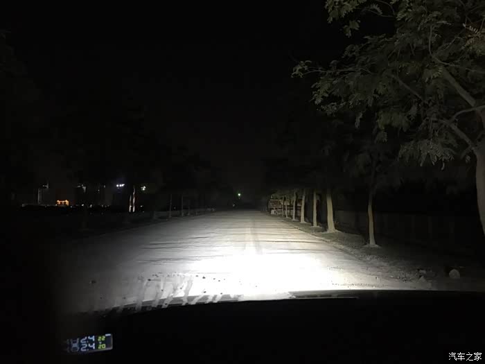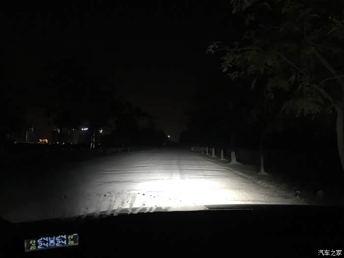 实际上路的时候,近光不错,切线完美,光照均匀没有明显的明暗区域,亮度比原车卤素灯肯定强不少,比我原来的LED大灯+LED雾灯,总体来看甚至还稍好一点。但是远光就不行了,开了远光基本上相当于没开一样,因为远光只有8W的功率,可想言之能照出什么亮度来。