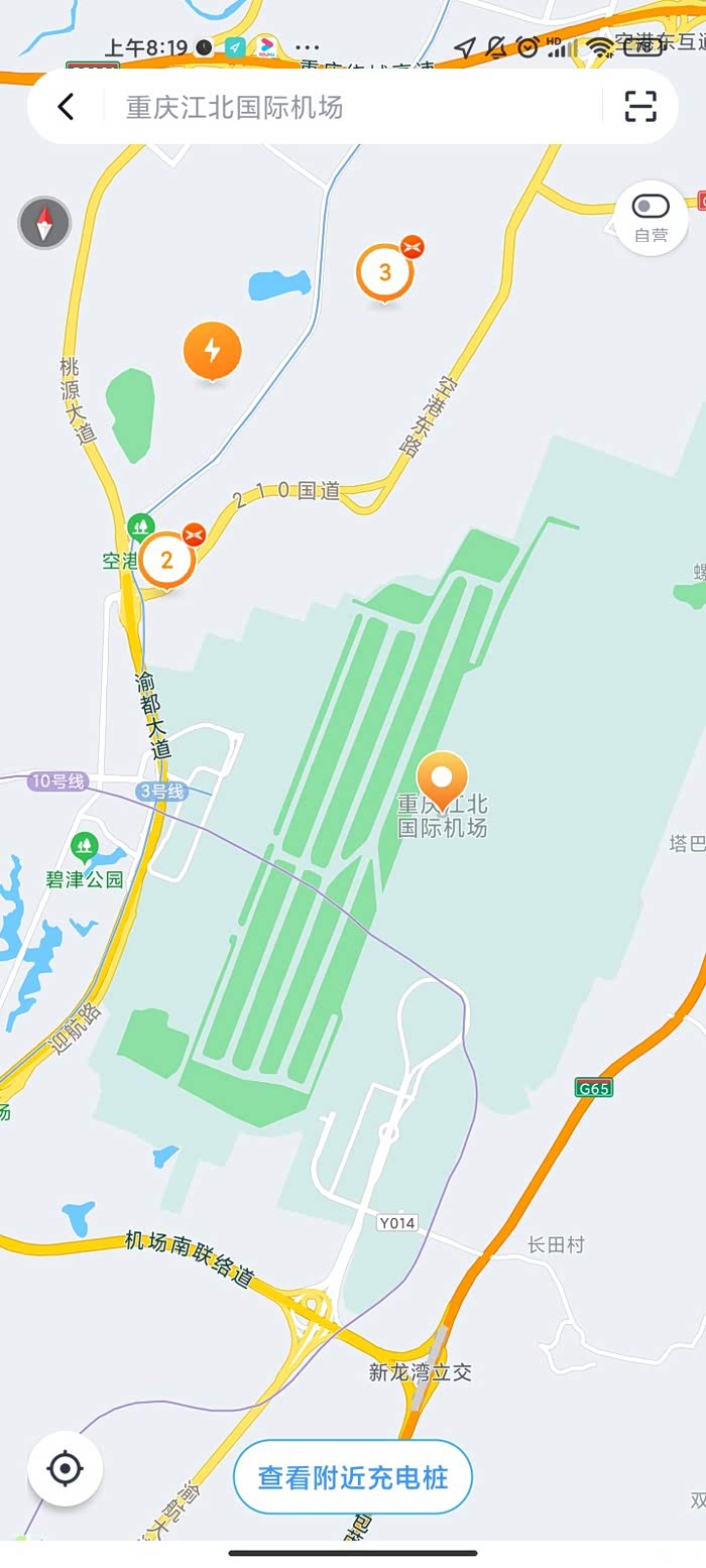 如果你不在附近,你可以在顶上自己填一下你的目的地比如我在江北机场,输入以后你就能看到附近有没有了。