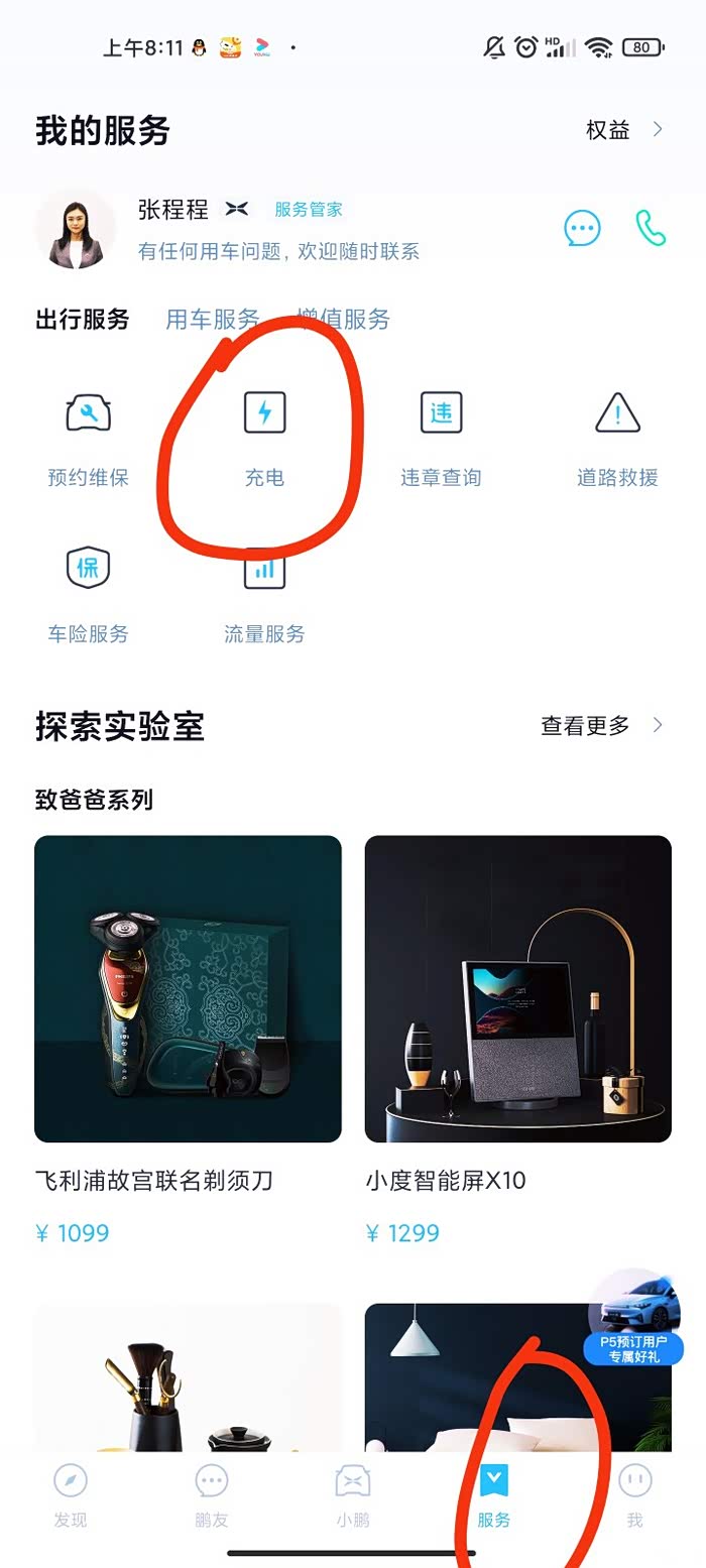今天写这篇帖子的初衷,也是想分享一下我1.9万公里在各个超充站充电的一些心得!因为我在官方的微信里,时常都有发信息询问的小鹏友,比如某某小鹏免费充电站充电桩多不多啊,到底是不是收费啊,有没有小鹏的专用超充啊,或者环境怎么样啊…等等的问题。而且我也基本上是快充薅羊毛为主,3000度被我用得还剩几百了! 还有一些想买新能源车,对小鹏感兴趣的,也不太懂这个3000度电到底是怎么回事怎么用或者怎么一个使用方法。 我是群里的活跃分子,基本上看到别人在群里发各种信息我通常比较积极的回答,最近我比较闲,所以我准备写一个比较详细的小鹏免费充电的一个攻略。 首先我从北区开始说起,最近工作原因呆在北区时间比较多一点。 干脆整详细点,因为我第一次充电都在群里和客服那边问了大半天。 首先肯定是下载小鹏的app,打开app,点下面服务