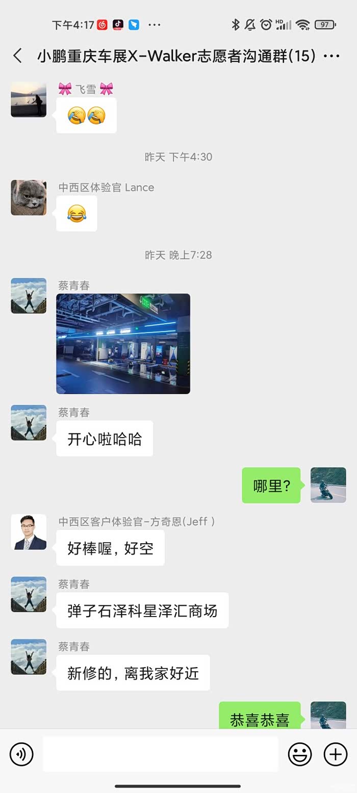 这个地方有商场电影院,各类配置都齐全,购物的时候、看电影来充个电还不错!但是估计要做好排队的心理准备。 最后两个重庆时光城蔚来超充站、重庆渝奥大道新能源充电站,我没去看了。有点累再加上我之前在车友群也听他们说过。感觉可以大概叙述一下就行了 时光城这个站点说是要收费,但是听他们说可以加一个群就可以免费了。下次你们谁去试了,在我下面评论一下吧,怎么弄