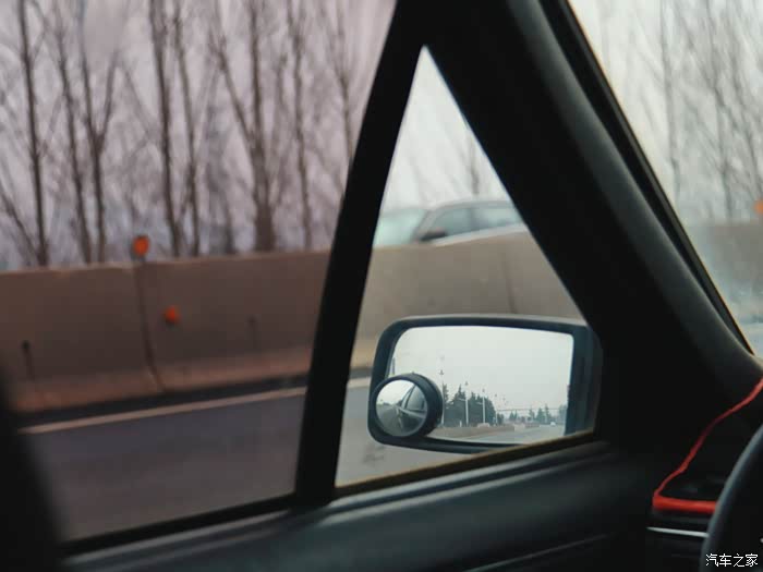 普桑的前门上有一扇无法打开的小三角窗,留出这一块来不贴太阳膜正好便于观察后视镜;普桑的后视镜面积不大,不过得益于坐姿比较低,后视镜的视野也算是开阔。