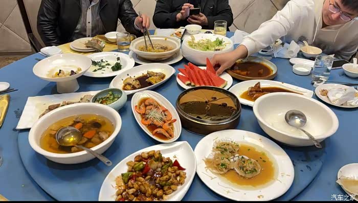 到了晚上5点10分所有人都已经到齐,5点30分所有菜品全部上齐,我们九个人围绕一桌一二三预备齐开启干饭模式。大家相聚在一起边干饭边说笑,小饭局还蛮惬意的。