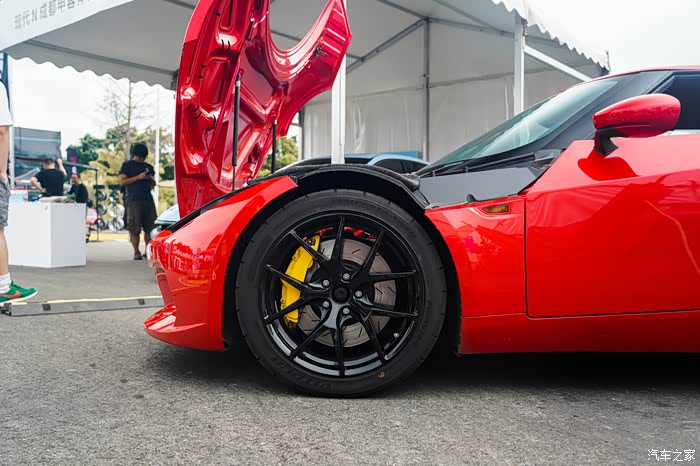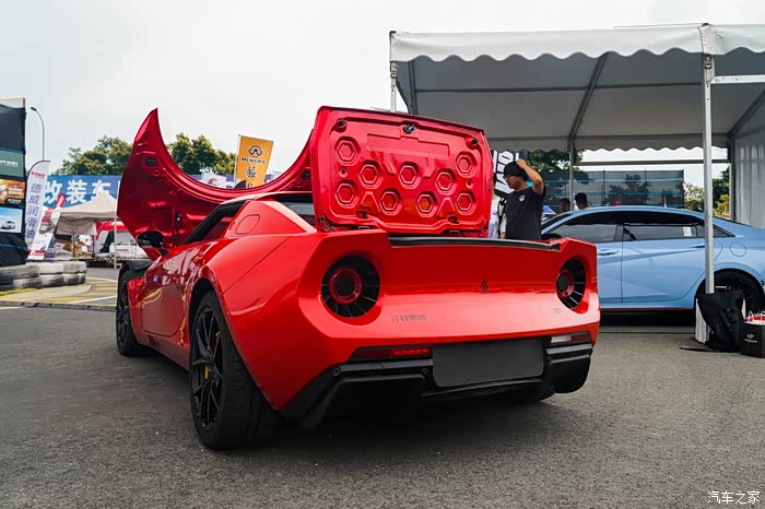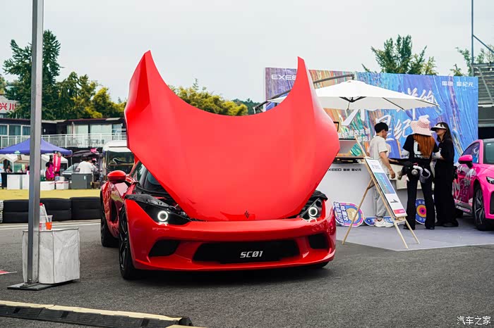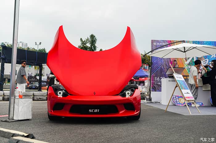 最让我惊喜的是这一次居然见到了SC01小跑车,现在准确来讲是江铃集团新能源旗下羿驰品牌首款跑车——羿驰01。售价22.98万元。搭载前后双电机四轮驱动,CLTC工况下续航500公里,0-100公里/小时加速2.9秒。这款车采用的是空间管阵式车架,电池没有放置在底部,所以这台车的坐姿可以做到非常低,完全坐在地上的感觉