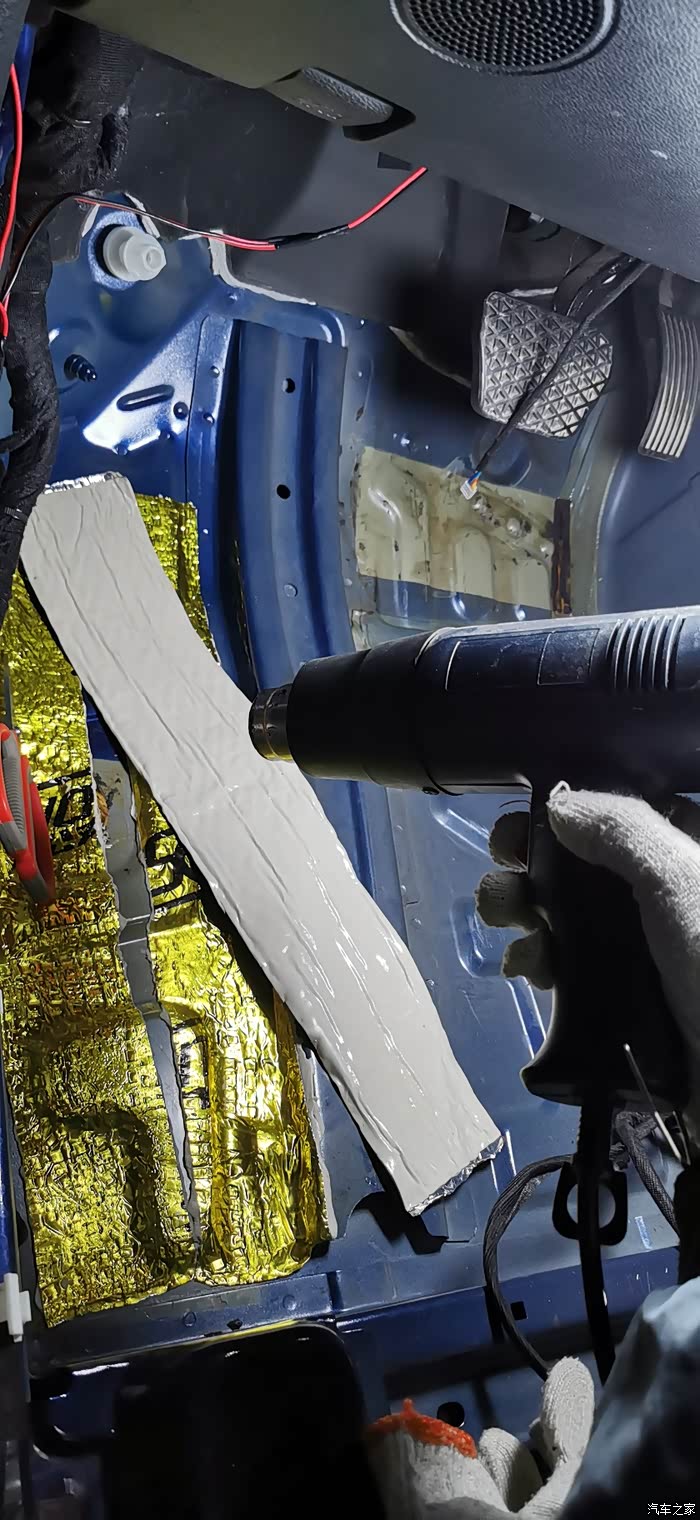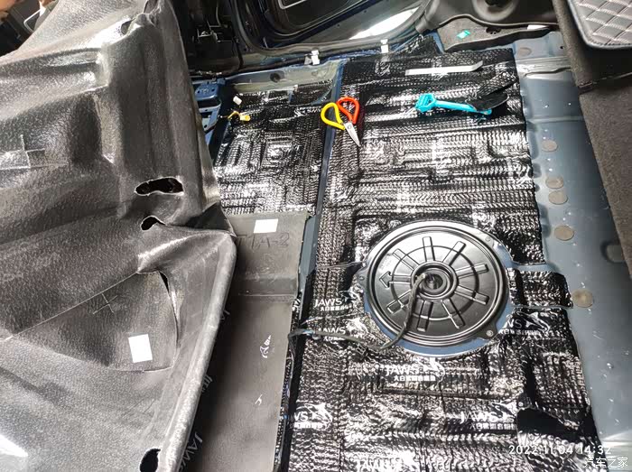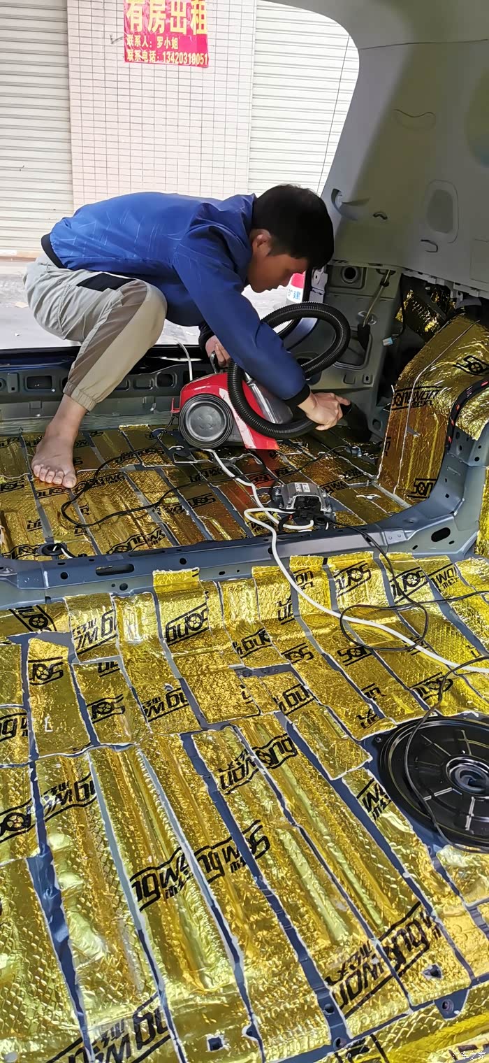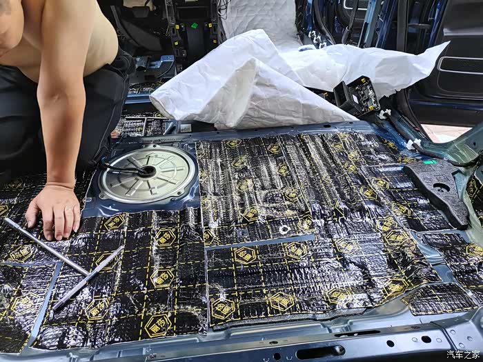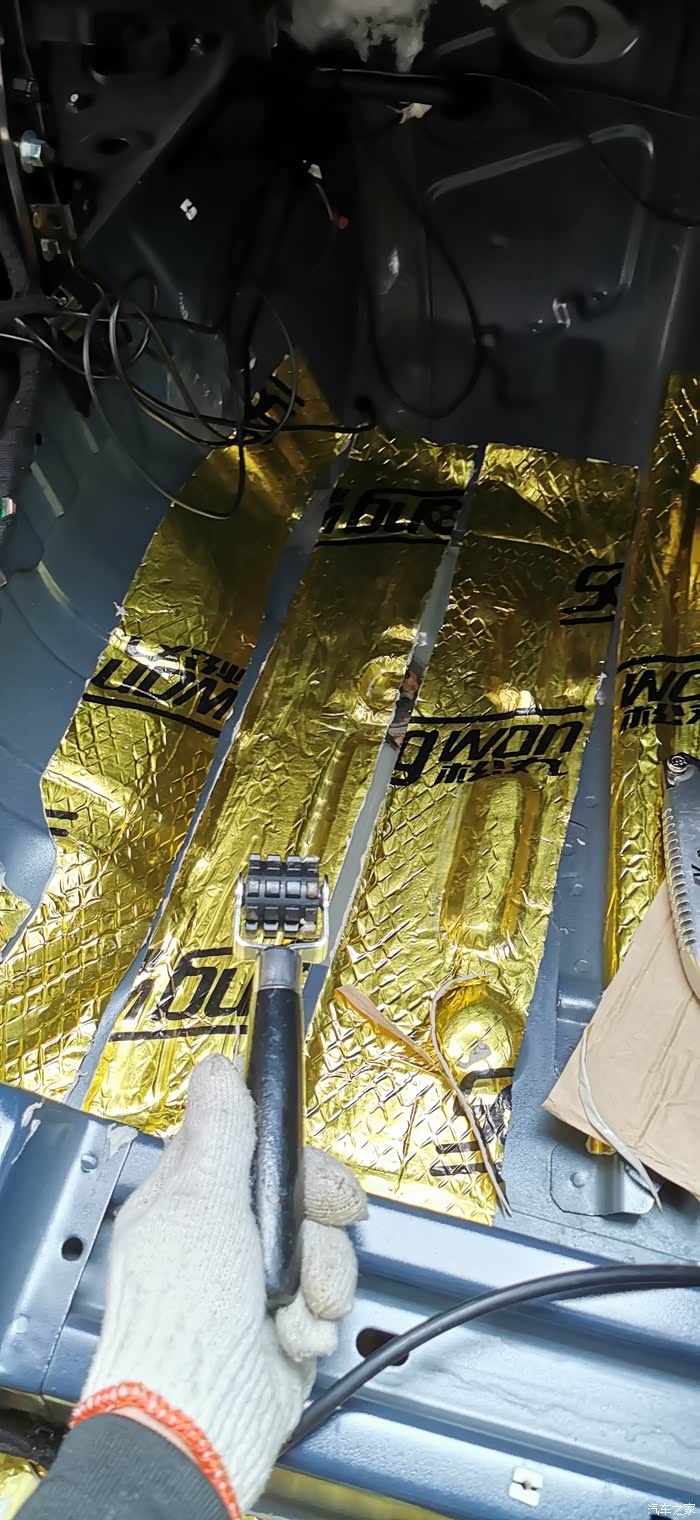 贴完止震板,清理一下垃圾,下一步就是贴隔音棉