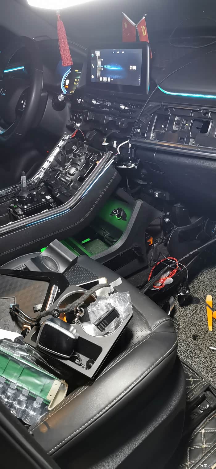 拆下中控台,之前拆过一次中控台,花了4个小时才拆下,有了些经验,现在20分钟就能拆下中控台