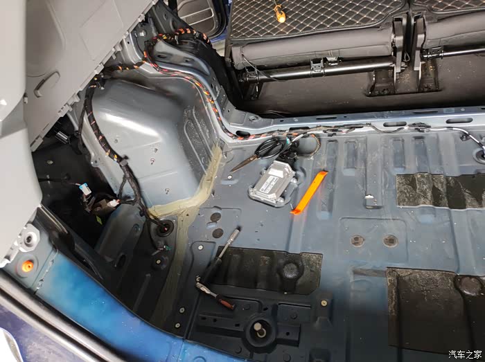 ?开工第二日,取下原车地毯,就可以看到eva胶了,就是这层胶臭,取下来的时候非常难闻,非常的刺鼻,有很多都老化了,一取下来方碎了,有些还没有老化的胶,还是生龙活虎,想弄碎都难,只有发臭和老化的部分,一只手轻轻的一捏就碎了,取下整车隔音板胶,大部分都是发臭