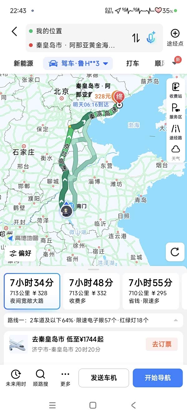 我们是从老家济宁出发前往,全程713公里!在出发前,我们对我的UNIV进行了全面的检查,确保轮胎气压正常,刹车灵敏,机油充足,还准备了备胎,千斤顶等应急工具。同时,带上了身份证,驾驶证,行驶证,以及适合海边游玩的物品,比如女朋友漂亮的泳衣、沙滩裙、遮阳帽,太阳镜,还有高倍数的防晒霜,毕竟海边的紫外线可不容小觑。提前在“阿那亚 APP”上预约了孤独图书馆和海边礼堂,这两个热门景点必须提前安排好。我们把行李整齐地放进后备箱,UNIV 的后备箱空间很大,轻松装下了我们两个人五天的行李,包括她的漂亮衣服,化妆品,还有我的Pocket3和摄影设备。