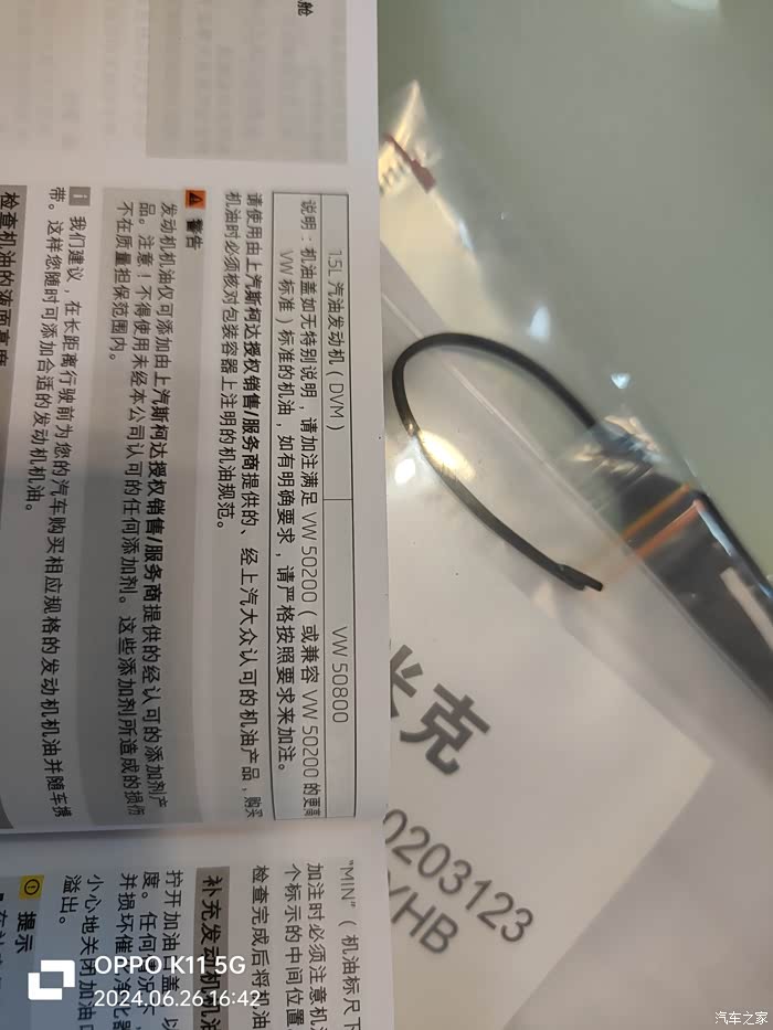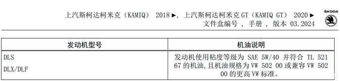说明书写的是机油规格是 VW50200(或兼容VW50200的更高标准)。我用的是VW50400/50700的0w30灰壳。