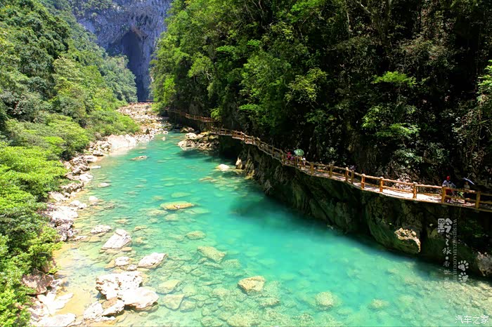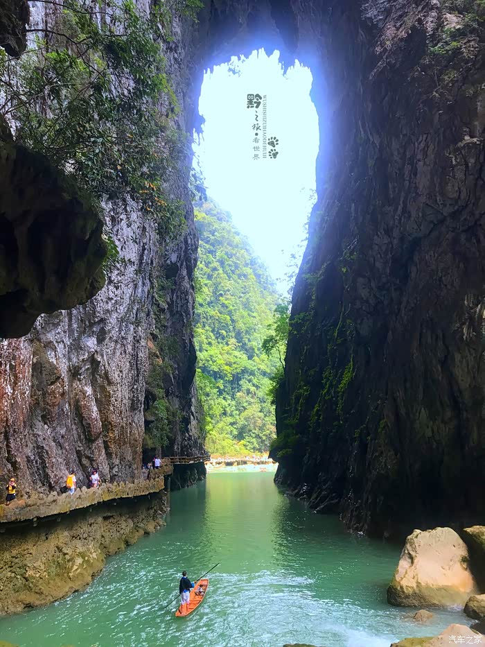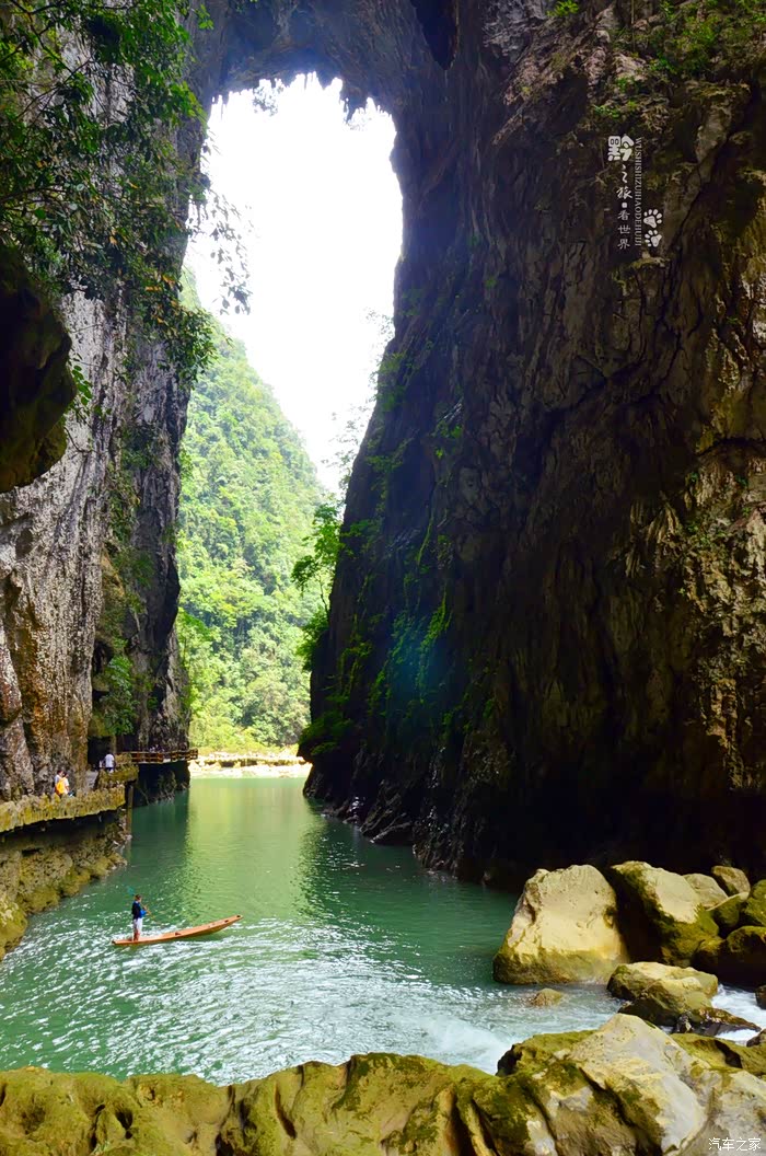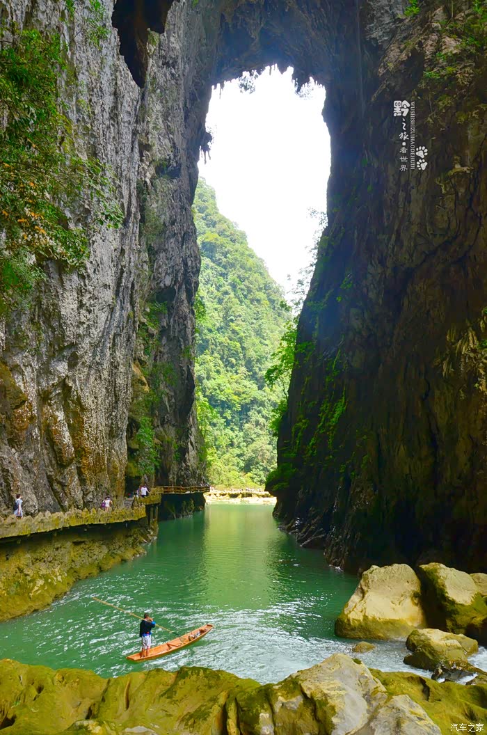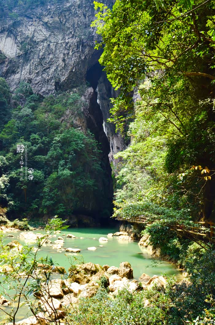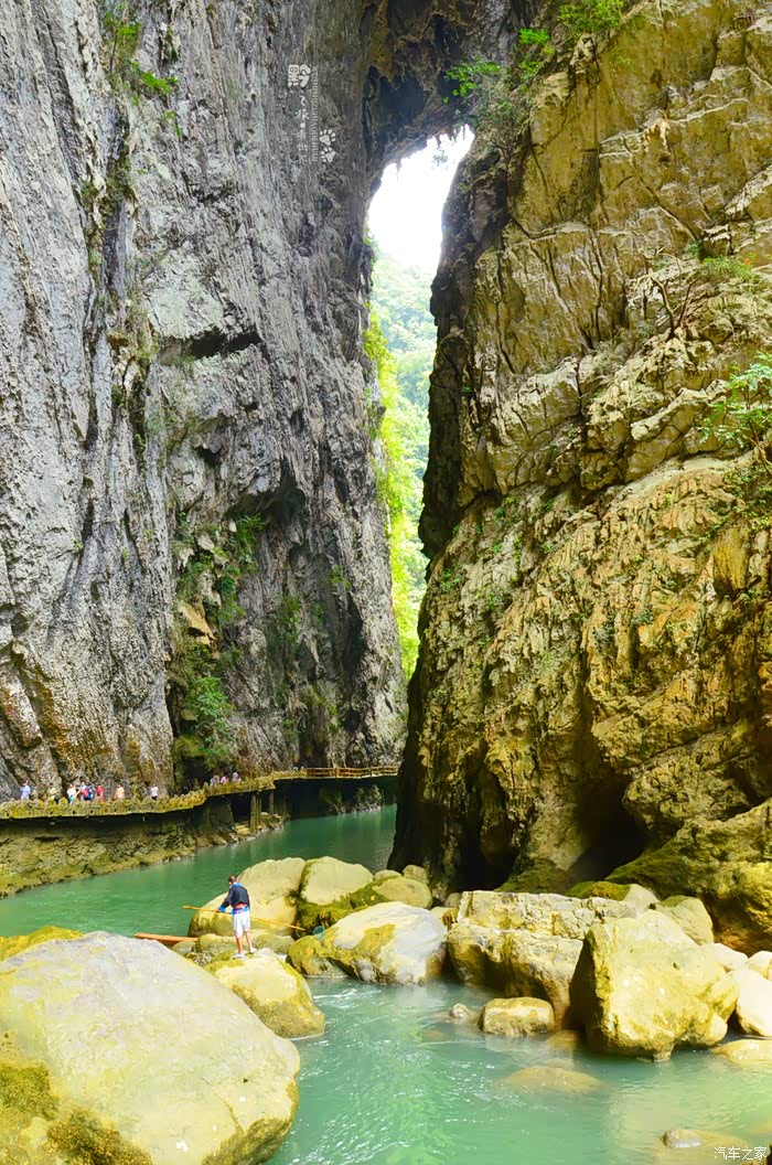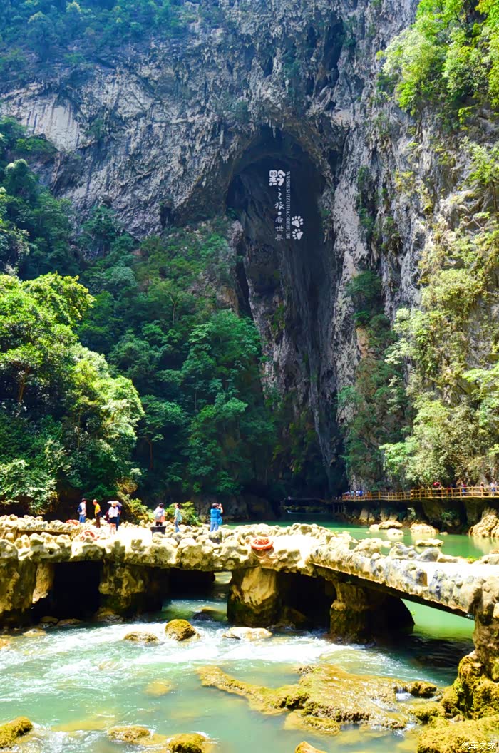 先前,去过重庆武隆的天坑地缝,记得天生桥不止一座,可是桥下没有如此碧绿的河水。