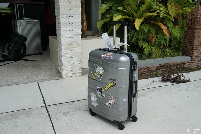 自己的拉杆箱,上面贴的标志想车友们一定很熟悉吧,哈哈汽车之家的忠实粉丝啦,在国外也不忘给咱网站做个宣传。