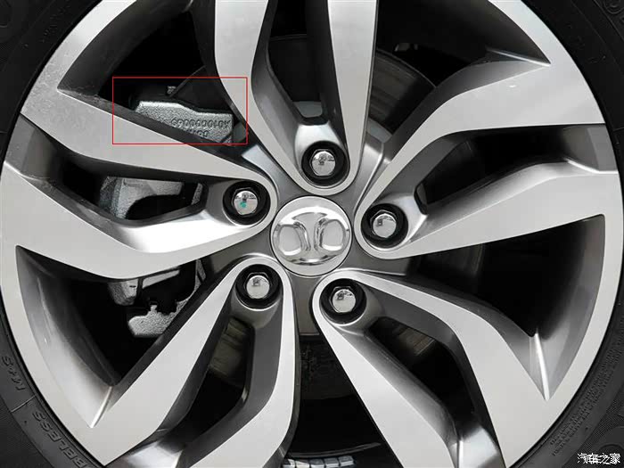 2、刹车装置卡石子。10号早从龙羊峡镇出发前往贵德,因前一晚起下雨,在本来十分干旱的黄河河谷地带,竟然遇到一处漫过路面的泥石流过水带。泥石流漫过的路面不过6-7米宽,中间一条小沟淌着泥水,大宝轻松地越过了泥水地段,再前进却明确有吱吱的摩擦声。判断了一下为刹车盘有泥沙,用清水冲洗干净刹车盘后响声依旧,再仔细观察,发现2个前轮刹车装置中卡了小石子(见下图红框处)。用工具共从2轮抠出7粒石子,声响消失。同时过来的一辆雪佛兰创酷,只简单用水冲洗了刹车盘,声响就消失了,不知是不是大宝那个位置是开放式的,而其他车辆有一定的保护措施。