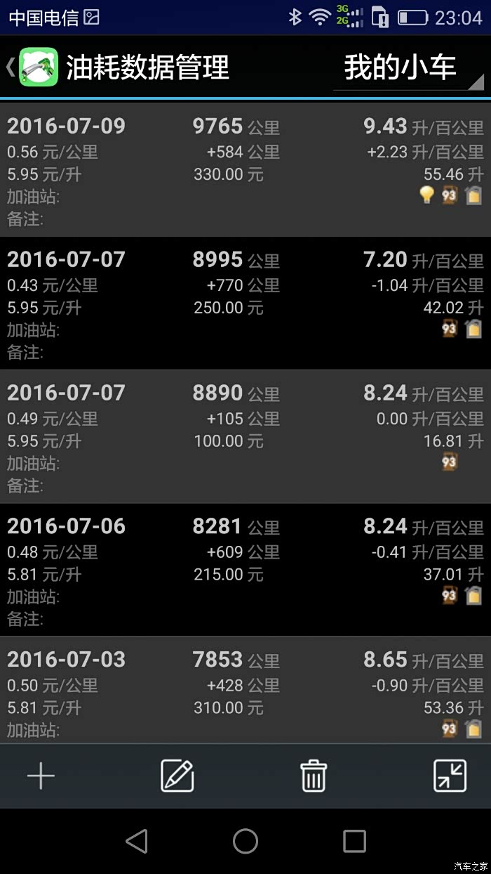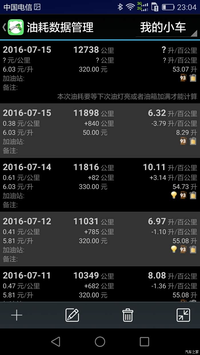 7、一次单箱油行驶840公里的试验。15号是自驾最后一天,从豫陕边界小城商南县回南京。为避免在河南、安徽加乙醇汽油,在商南加满油,目标到江苏境内再加油,原定行程大概820公里。全天走高速定速巡航85公里,早8点40出发,历时11小时(途中休息总计约1小时),最终在离家8公里的最后一个服务区加油,单箱油行驶840公里,加油时显示续航里程还有133公里,加油53.07升,油耗6.32升/百公里,加油后显示续航里程886公里。