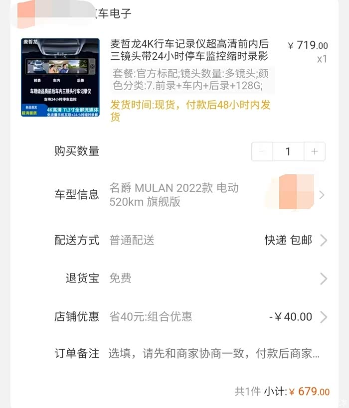 原本是想装一个记录前面的行车记录仪,不过车友介绍的产品看了后,感觉安装后对车辆也不影响,而且记录的非常清晰,可以实时记录行车情况,安装了可以记录车前面、车后面、车内的都可以,我也时不时当做网约车接人,车内的确实也有必要记录,记录三个位置的,价格也相差不是很大,所以就决定安装记录三个地方的记录仪。安装了就再也不用担心被碰瓷讹诈了。遇到有人危险驾驶还可以举报!通过某宝购买的流媒体记录仪。