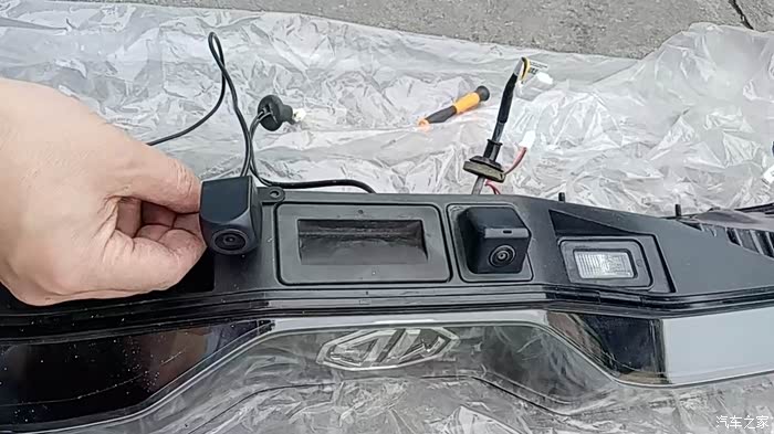 第二步:拆掉原车尾翼,并且打孔。按照说明书,在原车后视镜对面打孔按照摄像头。