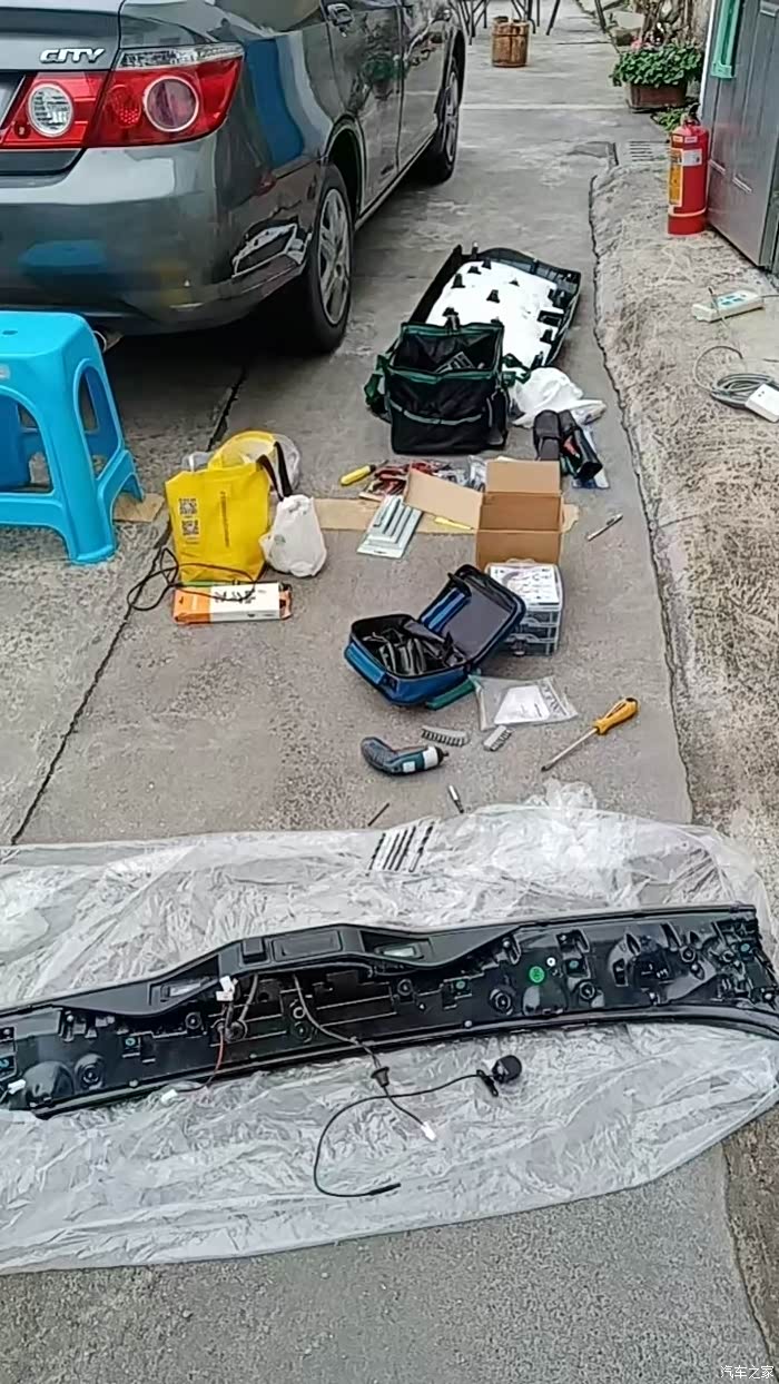 第三步:拆卸后备箱门上的隔音板,按照说明书和原车的电线走线。这里需要注意的是不能把之前原车的线弄坏了,不然灯就不亮了。