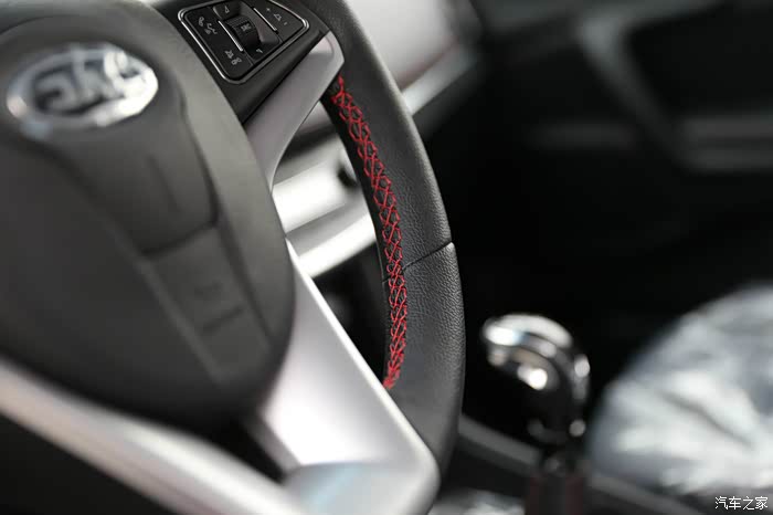 方向盘上标示改为了英文,真皮缝线的质感要比二代略好一点