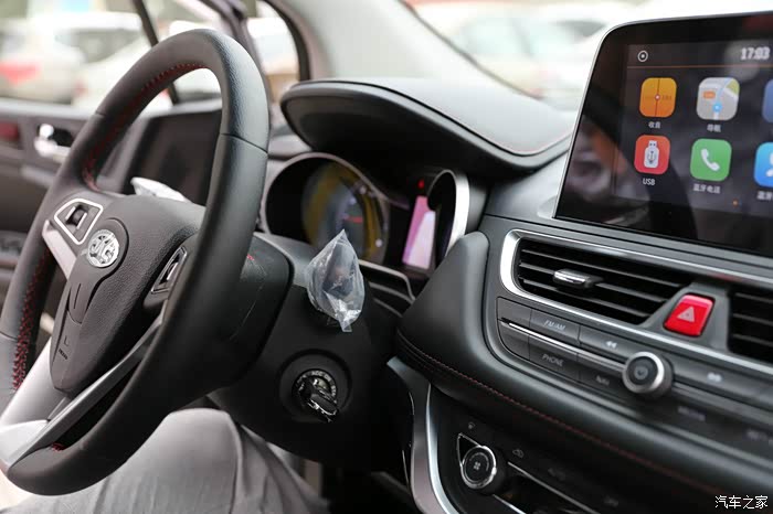 车内的第一眼,完全被中控台所吸引,这明显提升了一个档次,关键部位都有真皮缝线装饰,而且很有层次感。还有车门上都有真皮和仿碳纤维的装饰。原来的第二代中控的塑料感太强了,一看就是低档车的感觉。第三代这一点好了许多。