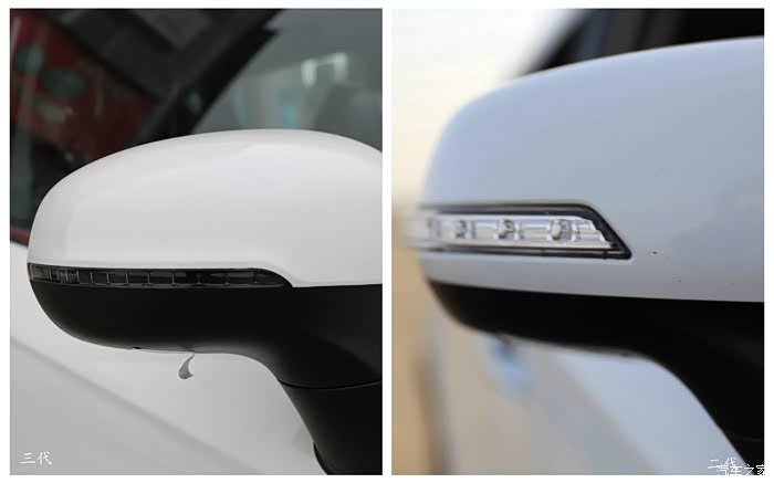 由于原来我的二代车是白色的,那么我们就选一辆白色的车型来了二、三代大比拼。注:对比图中,上为三代,下为二代,都用了文字标注过。