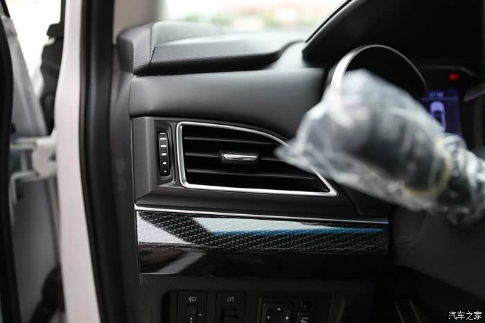 驾驶座的空调出风口和仿碳纤维的装饰条