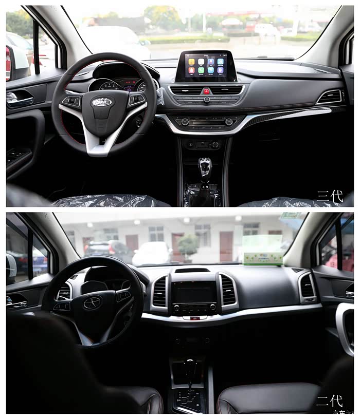 整车内饰是老司机们一眼看到的地方,从上面的对比图来看,三代的真皮内饰和有层次的分布,比二代那满满的塑料感强了很多,瞬间觉得车提升了一个档次