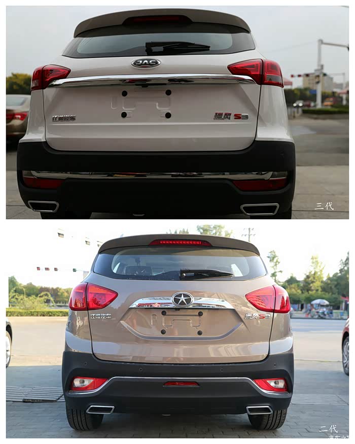 尾部上,三代镀铬的亮条使得尾部看上去更宽广一些,明显比二代要大气,好看程度上说不上来