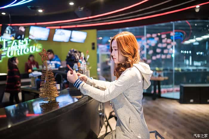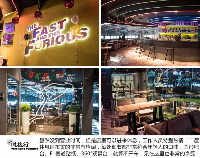 休息区每一处设计都非常符合年轻人的口味,木质桌椅、霓虹吧台、玻璃走廊……