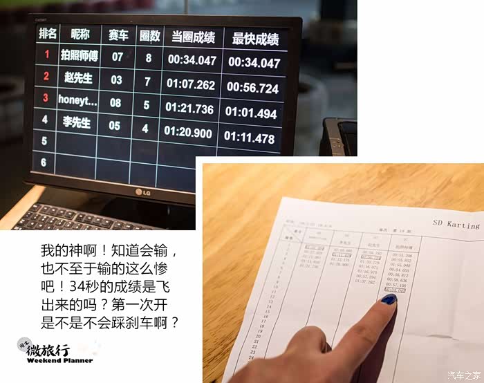 车上有一个计时块,每个人1节跑的圈数、最快用时都会清楚的记录下来