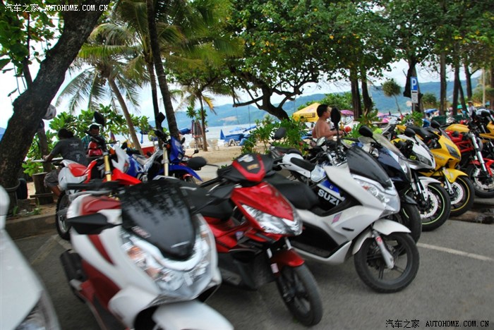 沿着沙滩到处是租借各种牛B摩托的摊贩,大排跑车、街车、越野、哈雷,大大的有