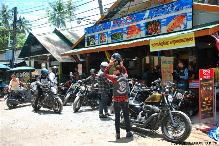 我们吃了一半,马蹄音阵阵响起,一群哈雷党也过来这家吃饭了