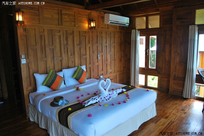 小木屋内部,房间同样做了蜜月布置,空调那是很给力啊