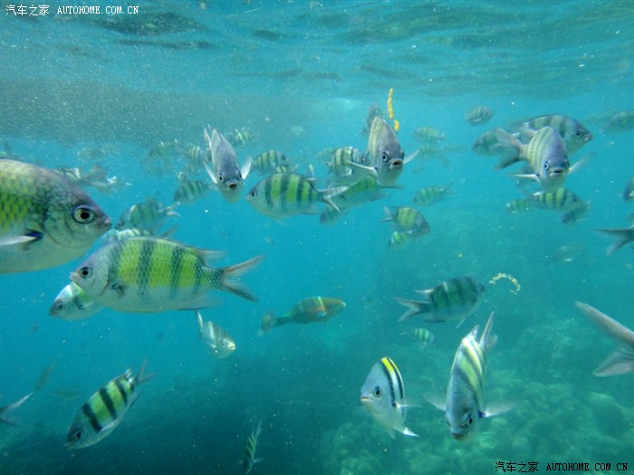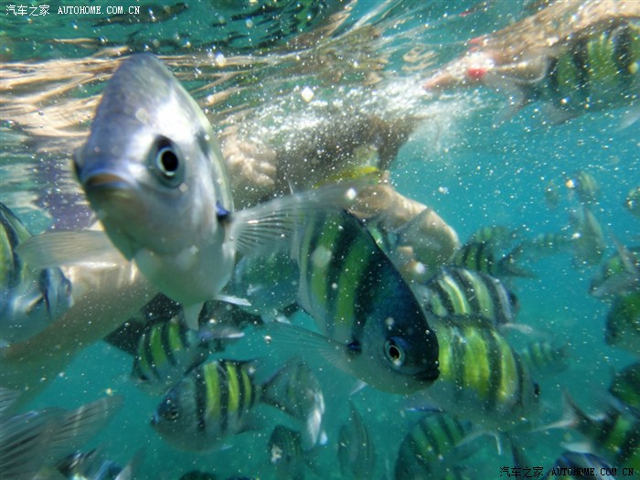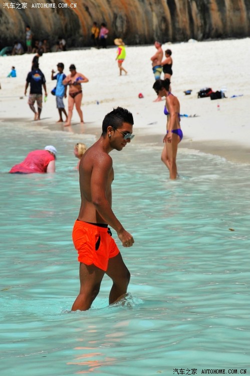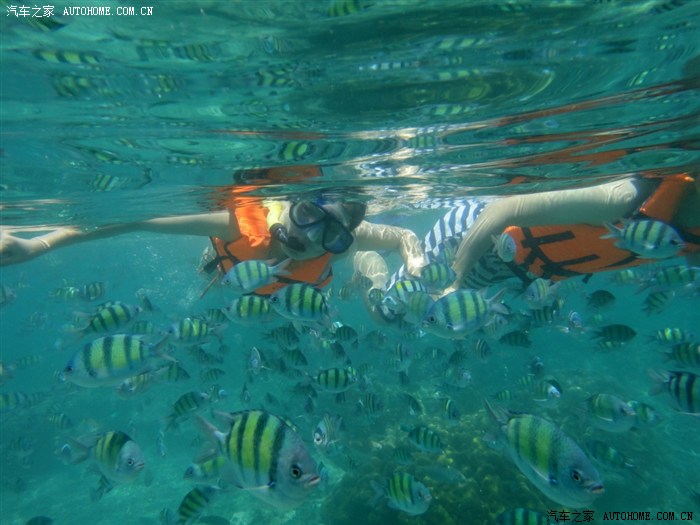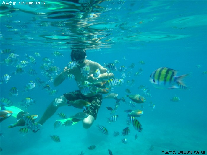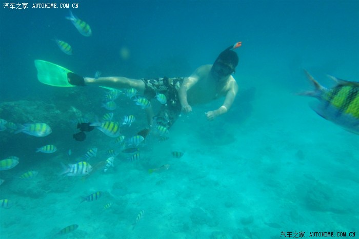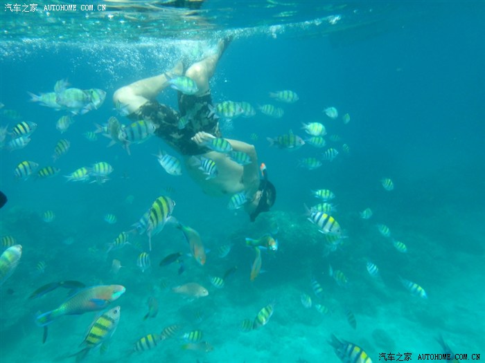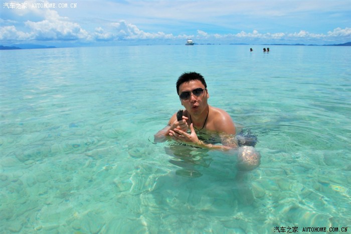 那边一群坐长尾船过来浮潜的家伙看着我从沙滩游过去,见鬼似的